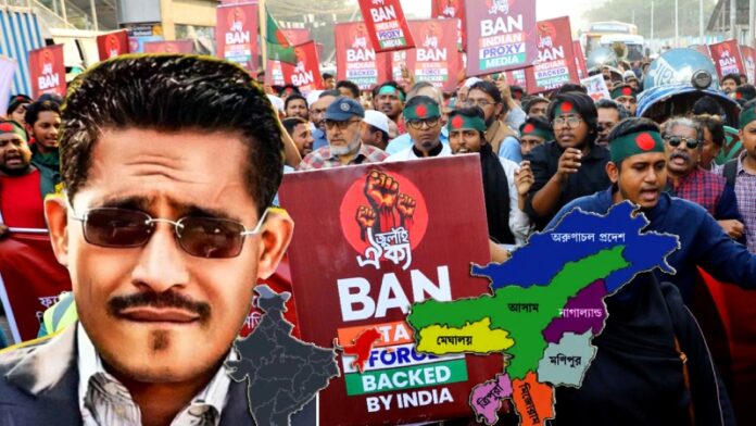 ঢাকার বুকে আবারও যেন জুলাইয়ের উত্তাল স্লোগান। অগ্নিঝরা হাওয়া রাজধানীর বাতাসে। পুলিশের ব্যারিকেডের সামনে দাসত্বের প্রতিবাদ। কুটনৈতিক দরবারে কড়া বার্তা। বর্তমান সরকারকে হুঁশিয়ারি। দেশ প্রেমিক ছাত্রজনতা এক কণ্ঠে একসূরে ক্ষোভ প্রতিবাদের স্লোগান। “যে ভারত খুনি পালে সেই ভারত ভেঙ্গে দাও” “যেই ভারত হাসিনা পালে সেই ভারত ভেঙ্গে দাও”। ” বাবরের পথ ধরো সেভেন সিস্টার্স স্বাধীন করো”, ” যেই ভারত জঙ্গি পালে সেই ভারত ভেঙ্গে দাও” , ” যেই ভারত কসাই পালে সেই ভারত ভেঙ্গে দাও”। ” দিল্লি না ঢাকা, ঢাকা ঢাকা”, ” গোলামী না আজাদী, আজাদী আজাদী” , আপোষ না সংগ্রাম, সংগ্রাম। বুধবার ঢাকার ভারতীয় হাইকমিশন অভিমুখে ‘মার্চ টু ইন্ডিয়ান হাইকমিশন’ কর্মসূচিতে জুলাই গণ-অভ্যুত্থানের সঙ্গে যুক্ত একাধিক সংগঠনের মোর্চা ‘জুলাই ঐক্য’র’ব্যনারে এই দৃশ্যপট দেখা গেছে ।