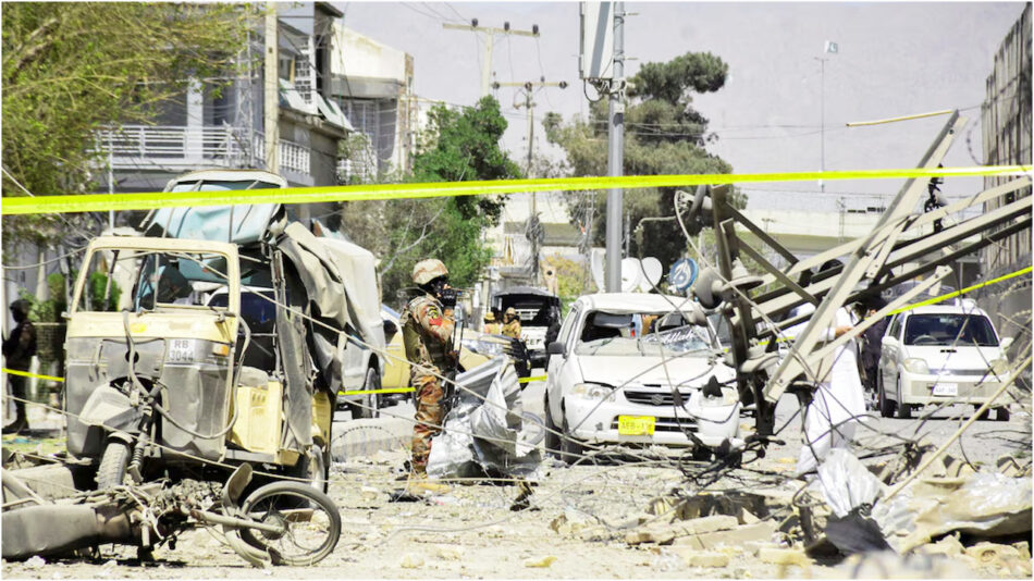 পাকিস্তানের দক্ষিণ-পশ্চিমাঞ্চলীয় বেলুচিস্তান প্রদেশের কোয়েটা শহরে দেশটির আধা-সামরিক বাহিনীর সদরদপ্তরের বাইরে আত্মঘাতী বোমা হামলায় অন্তত ১০ জন নিহত হয়েছেন। মঙ্গলবার হামলাকারীরা আধা-সামরিক বাহিনীর সদরদপ্তরে ঢুকে গোলাগুলির পর ওই বিস্ফোরণ ঘটিয়েছে বলে সরকারি কর্মকর্তারা জানিয়েছেন।