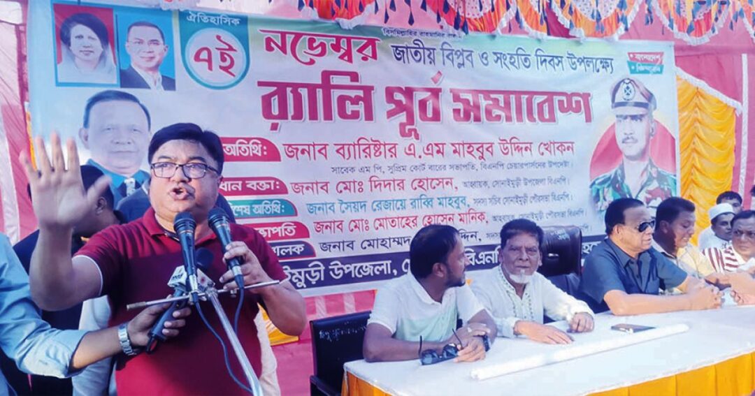 বিএনপি চেয়ারপারসনের উপদেষ্টা, সুপ্রিম কোর্ট বার এসোসিয়েশনের সভাপতি ও নোয়াখালী-১ আসনের সাবেক সংসদ সদস্য ব্যারিস্টার মাহবুব উদ্দিন খোকন বলেছেন, আগামী নির্বাচনে চ্যালেঞ্জ মোকাবিলা করতে হবে। যেকোনো ষড়যন্ত্র ঐক্যবদ্ধভাবে মোকাবিলা করতে হবে। বিগত সময়ে আন্দোলন সংগ্রাম করে ২২ জন নেতাকর্মী নোয়াখালী- ১ আসনে নিহত হয়েছেন। আহত হয়েছেন অনেকে। শুক্রবার বিকালে সোনাইমুড়ী রেলওয়ে চত্বরে জাতীয় বিপ্লব ও সংহতি দিবস উপলক্ষে আলোচনা সভায় বক্তব্য দিচ্ছিলেন তিনি।