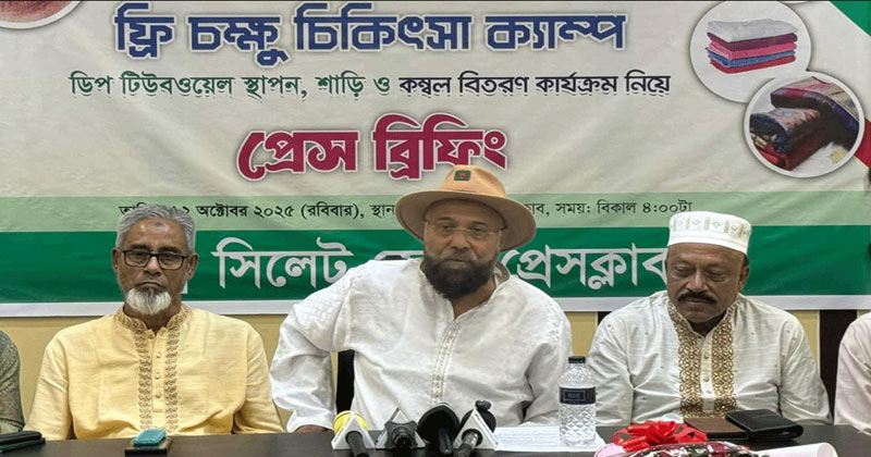 রবিবার (১২ অক্টোবর) সিলেট জেলা প্রেসক্লাবে ফ্রি চক্ষু চিকিৎসা ক্যাম্প, ডিপ টিউবওয়েল স্থাপন এবং শাড়ি, লুঙ্গি ও কম্বল বিতরণ কার্যক্রম উপলক্ষে মতবিনিময় ও প্রেসব্রিফিংয়ে এসব কথা বলেন তিনি।